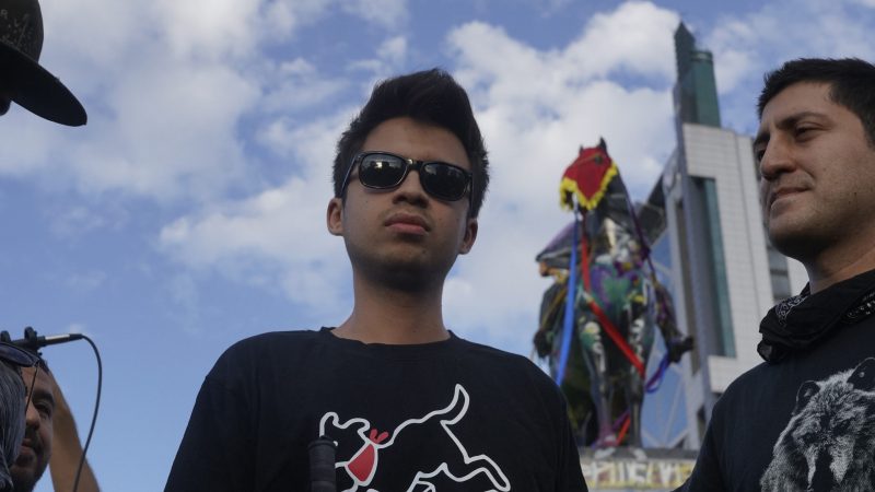 "Gustavo es músico, toca el bajo en una banda, creo que él también toca la batería…", comentó. "Pero recientemente estuvo en una protesta en contra del aumento de la desigualdad y la policía disparó contra la multitud con municiones de goma y metal. Le disparó a Gustavo en la cara y lo cegó en sus dos ojos. Nadie ha sido considerado responsable en absoluto", comentó Healy.