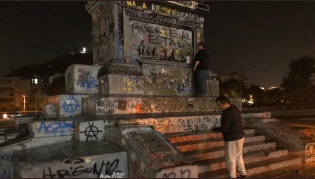 Entre otras cosas, se removieron los rayados y se repintó la estatua del general Manuel Baquedano.