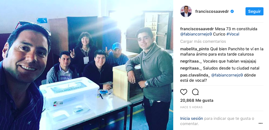 ¡Ser vocal de mesa no es tan malo como todos piensan! Y así lo demostró el animador de Canal 13, Pancho Saavedra, quien a través de sus redes sociales publicó detalles de su labor como vocal de mesa.