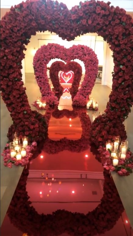 Fiel a su extravagante estilo, mostró a través de sus stories el espectacular regalo que le realizó Travis Scott. El cantante decoró la casa de la empresaria con grandes estructuras de corazón hechas con rosas rojas. Sin duda, una impactante demostración que revela el intenso romance que viven a diario.