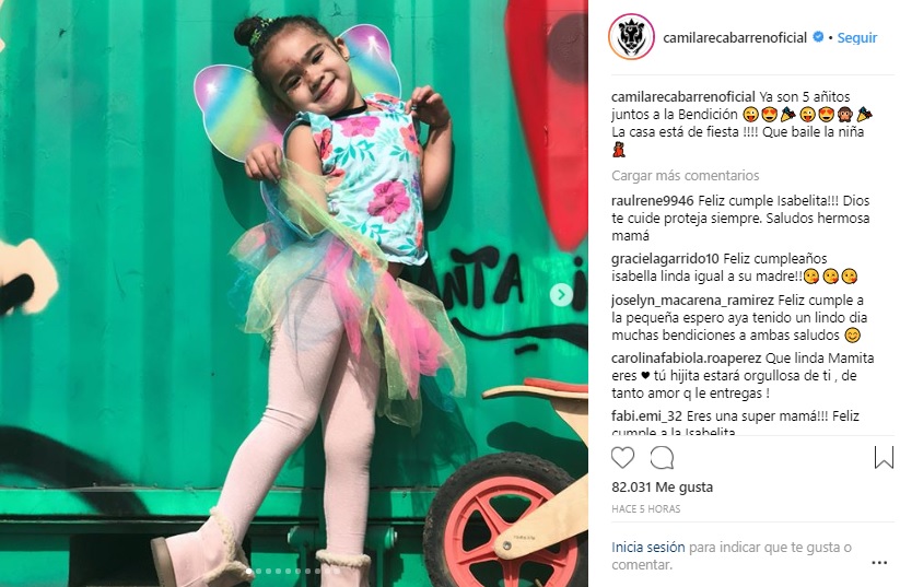 “Ya son 5 añitos juntos a la Bendición. La casa está de fiesta!!!! Que baile la niña”, escribió la ex chica reality para acompañar una foto de Isabella que compartió a través de su cuenta en Instagram.