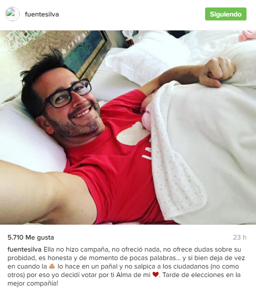 "A veces el amor es tan impaciente que no se aguanta no más. Quizás sabiendo que tú madre cumplía años mañana domingo quisiste convertirte en el más preciado de los regalos. ¡Y vaya que lo lograste! No sé cómo definir lo que sentí al abrazarte hoy por primera vez hija mía. No sé si escuchaste el juramento que te hice, no sé si tuviste conciencia de la mirada encandilada que te ofrendaba tu mamá, de las lágrimas felices que surcaban mi cara, de los besos enamorados que te lanzamos al viento. Alma Fuentes Burgat, te estoy mirando ahora, ya estás con nosotros, ya llegaste a descubrir el mundo de colores que te queremos presentar. Ahora descansas plácidamente en el pecho de quién te tuvo pacientemente en su guatita durante meses, horas antes lo hiciste sobre mí y tú aroma delicioso no lo quiero olvidar jamás. El 24 de septiembre para nuestra familia nunca más será el mismo. Desde hoy será el día en que recordemos el mejor minuto de nuestras vidas. Gracias a quienes con tanto cariño nos han entregado sus afectos en este tiempo y nuestro especial abrazo a quienes siguen dando ardua y sentimental batalla para ser padres"