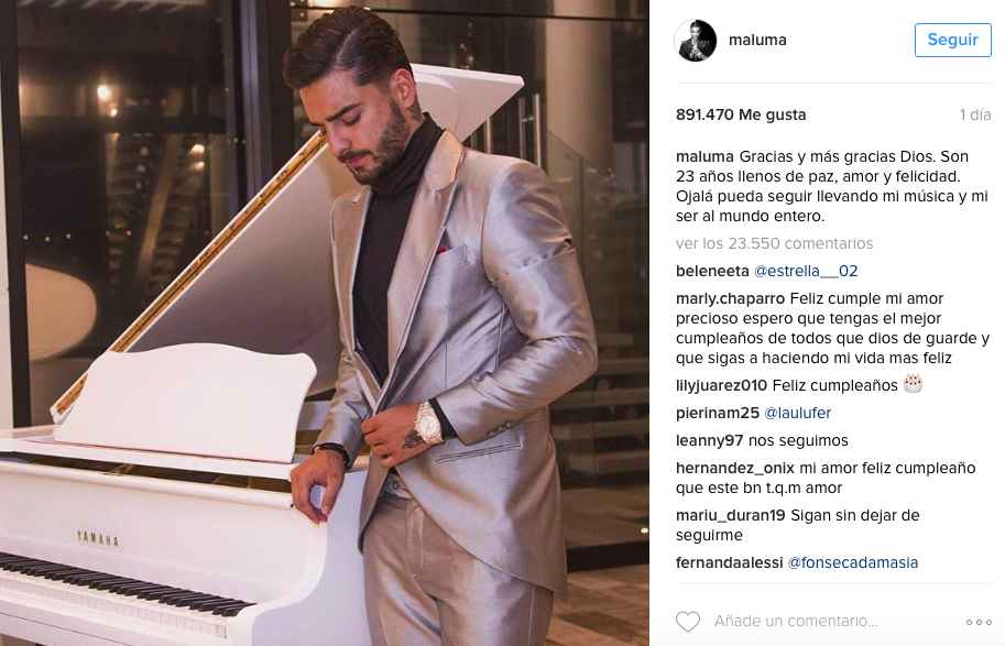 El pasado 28 de enero el guapo colombiano Maluma celebró su cumpleaños número 23.