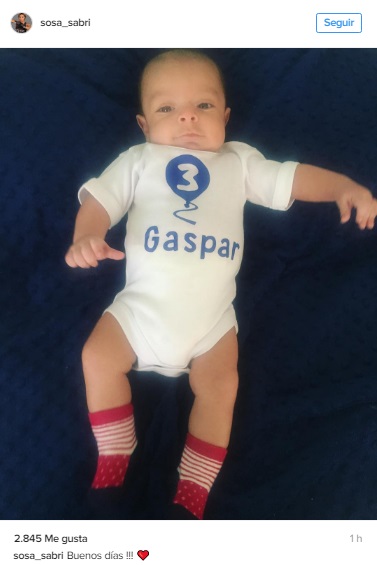 Justamente hoy, el retoño de Sabrina ya cumplió 3 meses y quiso celebrarlo a través de redes sociales. Para eso subió una foto donde se ve al pequeño con un body que decía "3" dentro de un globo. "Buenos días", escribió ella junto a la tierna imagen.