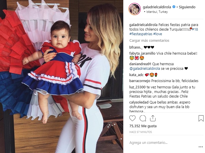 Aunque se encuentra a muchos kilómetros, en su hogar en Turquía, Gala Caldirola no dejó pasar la oportunidad para chochear con su hija Luz Elif, a quien vistió de huasita chilena.