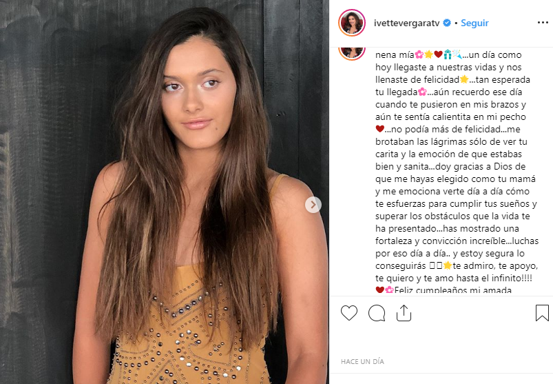 "Feliz cumpleaños nena mía...un día como hoy llegaste a nuestras vidas y nos llenaste de felicidad...tan esperada tu llegada...aún recuerdo ese día cuando te pusieron en mis brazos y aún te sentía calientita en mi pecho...no podía más de felicidad (...) ...te admiro, te apoyo, te quiero y te amo hasta el infinito!!!! Feliz cumpleaños mi amada bebe!!", fue parte del mensaje de la animadora.