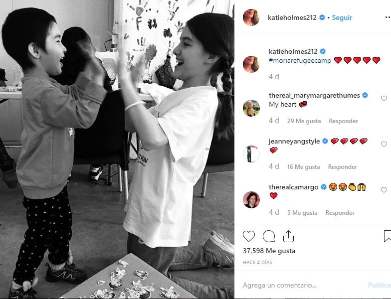 En ese contexto, Katie compartió una postal de su hija jugando con uno de los niños que vive ahí.