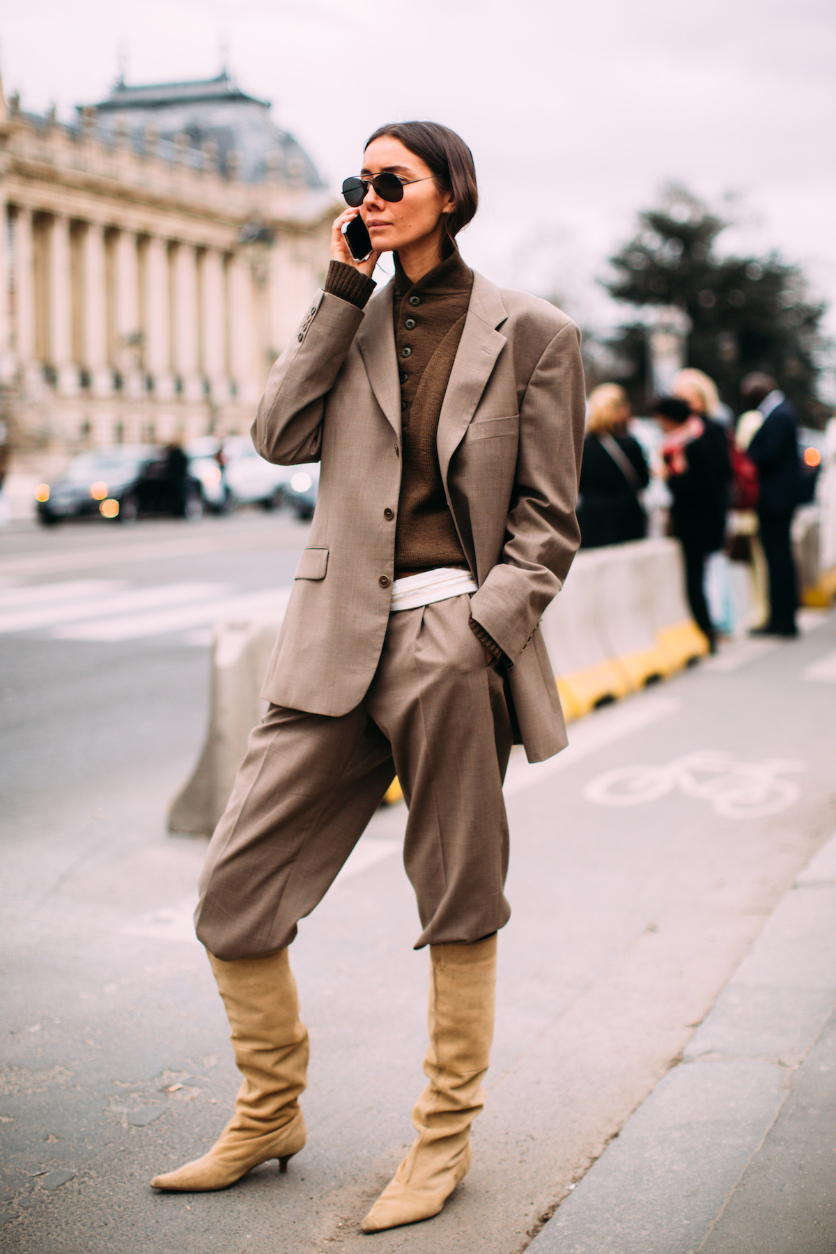 Se trata de llevar botas de caña alta por encima de los pantalones de pernera ancha.