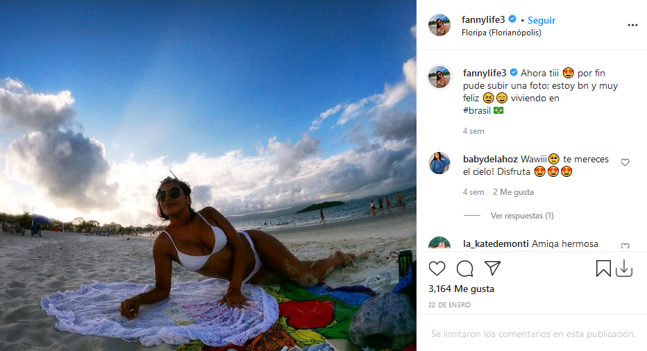 Aunque estuvo varias semanas desaparecida de sus redes sociales, Fanny Cuevas reapareció hace un par de meses con espectaculares fotografías en las playas de Brasil.