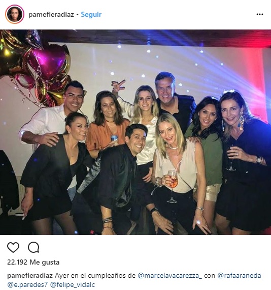 Y también compartió una foto oficial con algunos de los invitados. "Ayer en el cumpleaños de Marcela Vacarezza con Rafael Araneda, Estados Paredes, Felipe Vidal", escribió.
