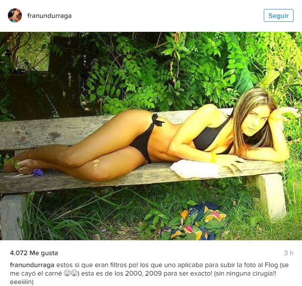 Y ahora, se atrevió a subir una foto de hace 7 años, cuando aún no se había realizado cirugías plásticas. "Estos sí que eran filtros poh! Los que uno aplicaba para subir la foto al Fotolog (se me cayó el carné ) Esta es de los 2000, 2009 para ser exacto! (sin ninguna cirugía!)", aseguró.