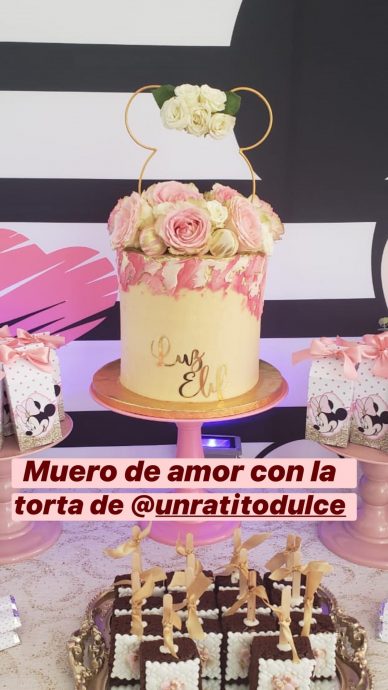 El cumpleaños de Luz tuvo como temática a Minnie Mouse, mientras que la decoración fue principalmente en tonos rosa y dorado, destacando detalles como las mesas y sillas adornadas de tul.