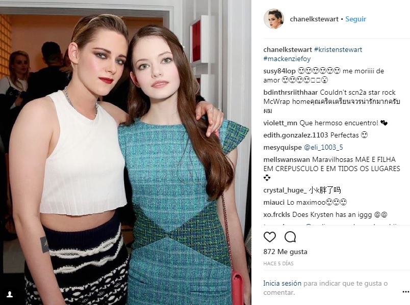 El dúo se conoció cuando Mackenzie sólo tenía 10 años y donde dio vida a Renesmee. Actualmente tiene con 17 años, misma edad con la que Stewart inició el rodaje de la saga "Crepúsculo".