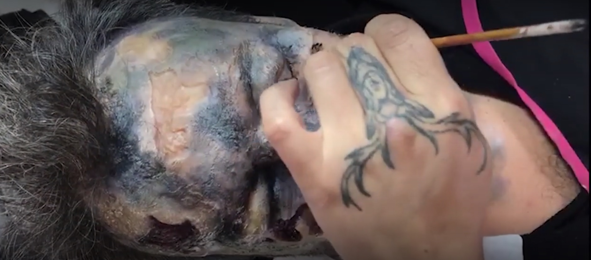 En conversación con Mega, la maquilladora del área dramática del canal, Vale Aravena, contó cómo fue el proceso para llegar a ese escalofriante resultado. Se trata de un maquillaje con efectos especiales que cuyo proceso duró cerca de dos horas.