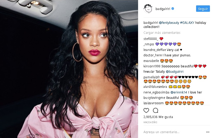 Se trata de su primera gama de maquillaje para fiesta llamada Galaxy Collection, que la cantante acaba de anunciar a través de su cuenta de Instagram. "Fiesta Colección #Galaxy. ¿Están listos? Viernes 13 de octubre", escribió Rihanna a modo de adelanto.
