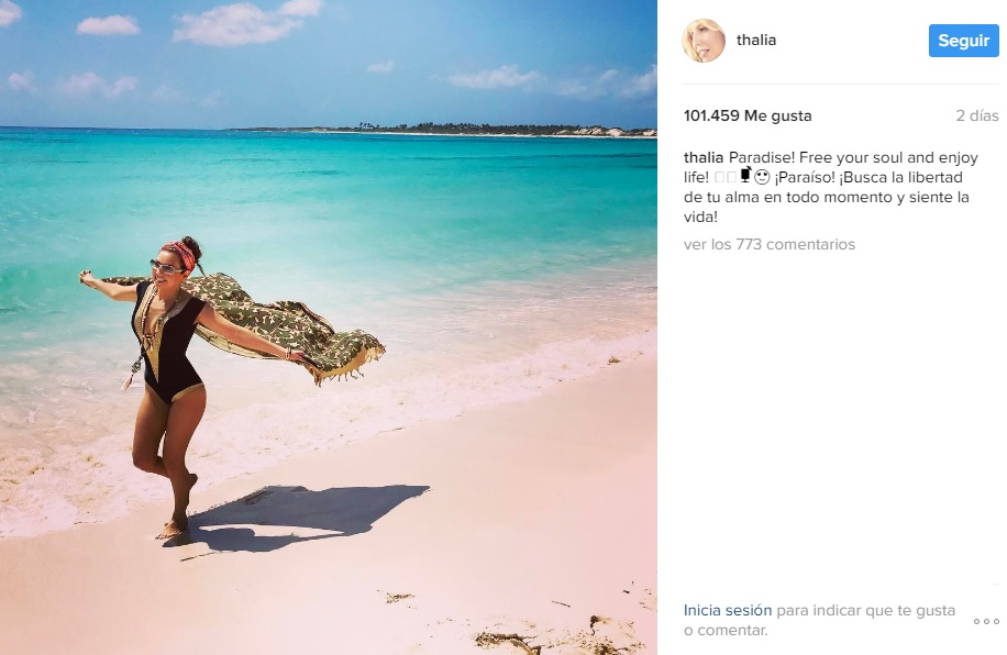 Y es que ante una agenda laboral muy apretada, la cantante mexicana dedicó un tiempo para aprovechar de salir en familia y presumir su envidiable figura a sus 45 años. "¡Paraíso! ¡Busca la libertad de tu alma en todo momento y siente la vida!", escribió Thalía en una de las imágenes que compartió a través de Instagram.