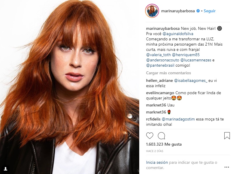 "Nuevo trabajo, nuevo pelo! ¡Comenzando a transformarme en 'Luz', mi próximo personaje de las 21h! ¡Más corta, más pelirroja y con chasquilla!" escribió Mariana para acompañar la imagen que subió a su cuenta en Instagram.