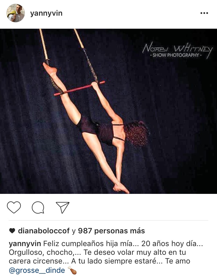 Hace una semana, la joven cumplió 20 años y el orgulloso padre celebró a la distancia con un tierno mensaje: "Feliz cumpleaños hija mía. Veinte años hoy día. Orgulloso, chocho. Te deseo volar muy alto en tu carrera circense. A tu lado siempre estaré. Te amo".