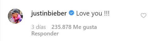 El cantante canadiense no quedó indiferente a la publicación y le escribió "Te quiero".