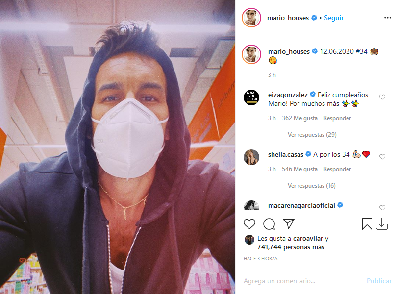 "12.06.2020 #34 🎂 😘", fue el escueto mensaje que compartió en su cuenta de Instagram, donde aparece con una mascarilla, que muchos ya tenemos casi integrado en nuestra rutina diaria.