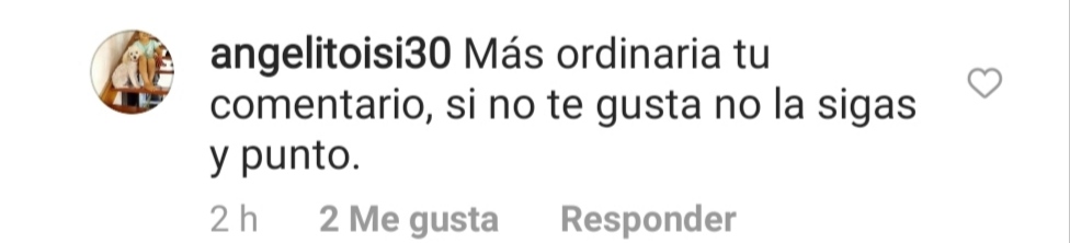'Sigues siendo ordinaria', le comentó una usuaria de Instagram, demostrando -de paso- la nula empatía con el género.