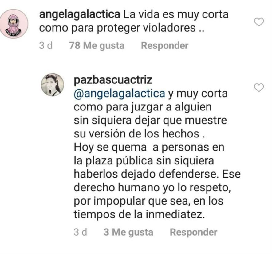 “Muy corta como para juzgar a alguien sin siquiera dejar que muestre su versión de los hechos. Hoy se quema a las personas en la plaza pública sin siquiera haberlos dejado defenderse. Ese derecho humano yo lo respeto, por impopular que sea, en los tiempos de la inmediatez”.