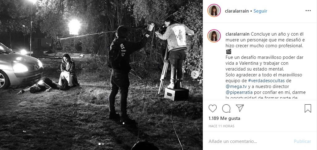 La actriz acompañó su mensaje con fotos de su trágica muerte en "Verdades ocultas" y agregó: "no puedo ponerlos a todos acá, pero quiero agradecer a Cristián Arriagada y Francisca Gavilán por las horas compartidas en set, no solo me llevo el privilegio de haber trabajado con ustedes, sino lindos amigos. Comienza una nueva década y voy por más".