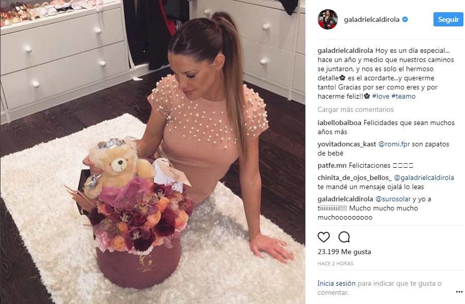 "Hoy es un día especial... hace un año y medio que nuestros caminos se juntaron, y nos es solo el hermoso detalle es el acordarte...y quererme tanto! Gracias por ser como eres y por hacerme feliz!!", escribió Gala en la foto, donde la vemos a ella junto a su gran ramo de flores.