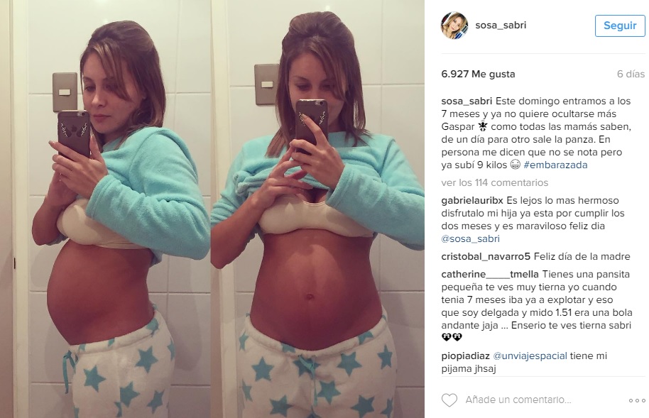 Por su vida sana y buena condición física, Sabrina Sosa casi ni parece que está embarazada de su primer hijo, Gaspar. Orgullosa, ha compartido cómo poco a poco ha aparecido su pequeña panza de 7 meses.