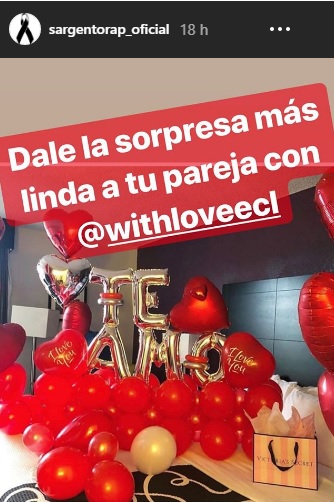 Ahora la chilena y el mexicano están nuevamente juntos y en esta fecha especial, el rapero quiso sorprender a su novia con un lindo detalle. A través de sus historias de Instagram, Sargento mostró que llenó una habitación de globos rojos y con forma de corazones, además de un gran adorno que dice "Te amo".