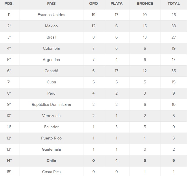 Con estos resultados, Chile queda en la siguiente posición entre los países:
