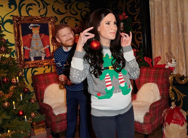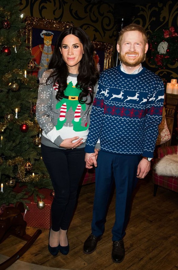 La exhibición, incluso, muestra a Meghan con una prominente pancita producto de su embarazo.