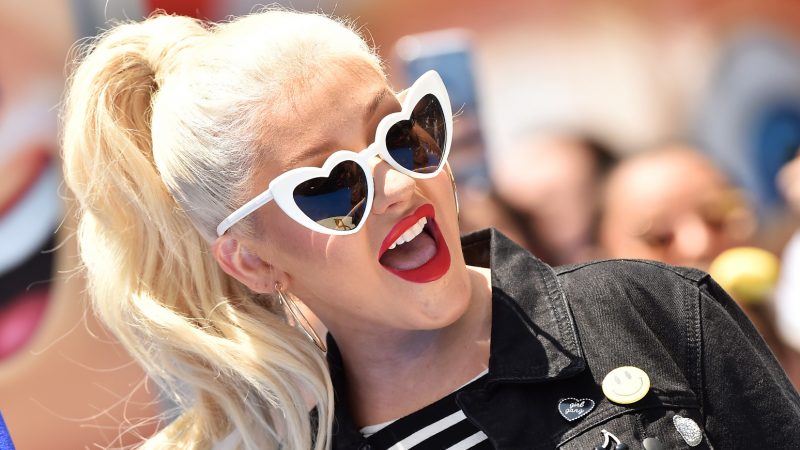 Drew Barrymore utiliza unos al estilo aviador que combinan con su traje azul marino.