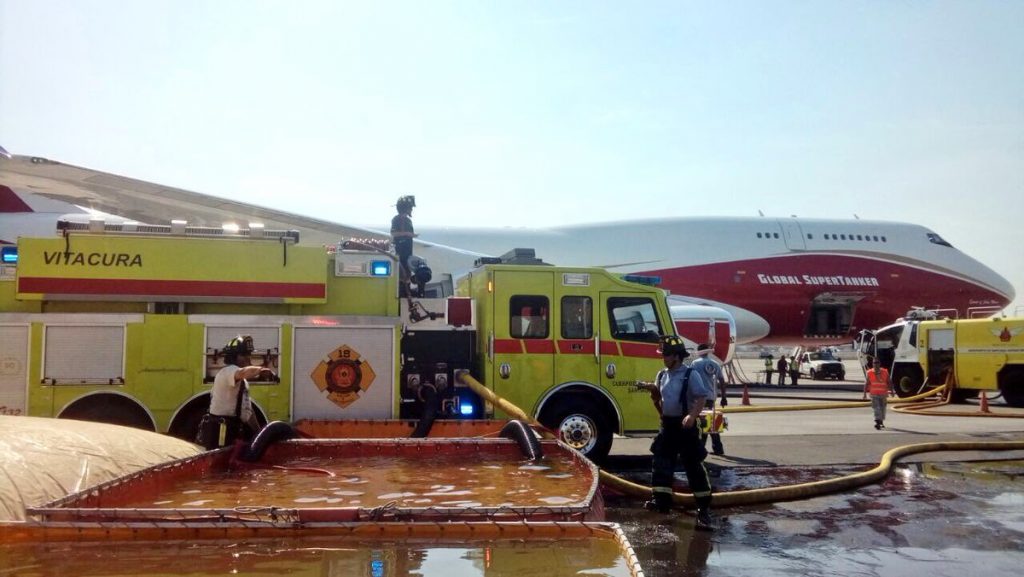 Luego de largas gestiones y gracias al aporte de Lucy Ana Avilés, una chilena radicada en Estados Unidos (revisa más detalles acá), esta madrugada llegó el megaavión Supertanker B747-400 al Aeropuerto de Pudahuel, con el objetivo de ayudar en el combate de los incendios forestales que afectan al país.