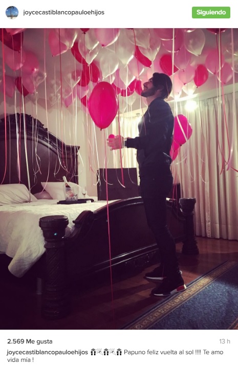 Por eso, muy fiel a su estilo, Joyce mostró la sorpresa que le preparó en el día de su cumpleaños número 32. Para eso llenó su habitación de globos de corazones. "Papuno feliz vuelta al sol !!!! Te amo vida mía !", escribió ella junto a una foto donde se ve al futbolista descubriendo su sorpresa.