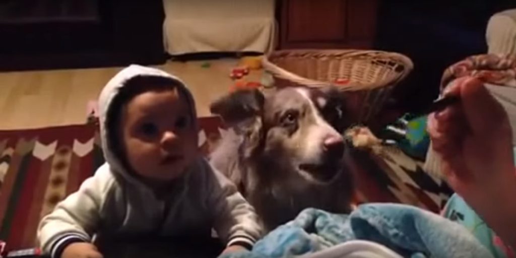 Casi como una competencia de hermanos. Así es la divertida situación que protagonizan un bebé de un año y un perrito, cuando sus papás le pidieron que dijera mamá, para incentivarlo a que hablara y así recibir la primera cucharada de comida.