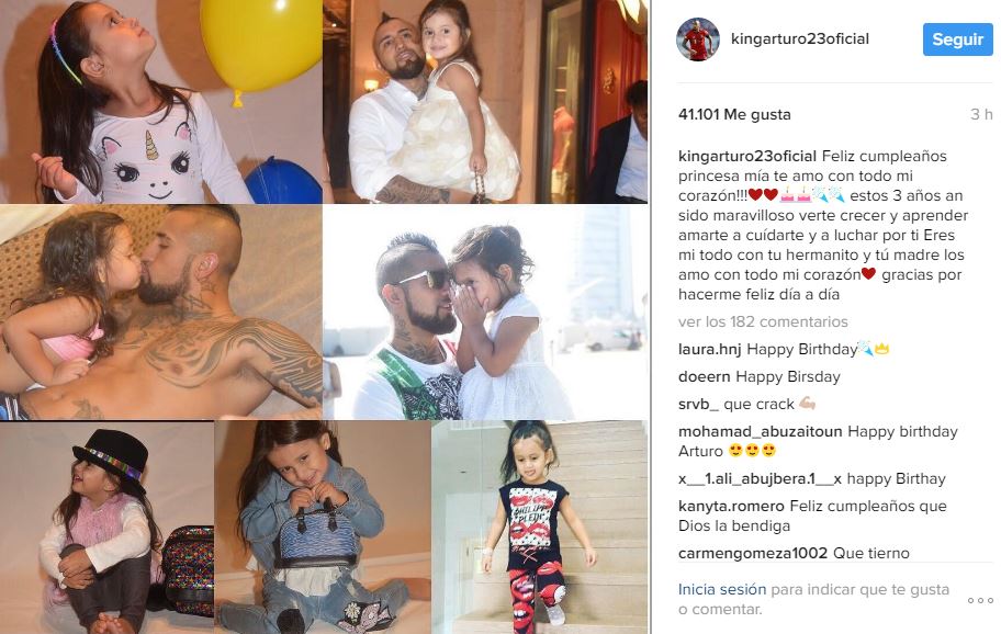 "Estos 3 años han sido maravillosos. Verte crecer y aprender a amarte, a cuidarte y a luchar por ti. Eres mi todo con tu hermanito y tú madre. Los amo con todo mi corazón. Gracias por hacerme feliz día a día", escribió el futbolista en la publicación que ya superó los 40 mil Me gusta.