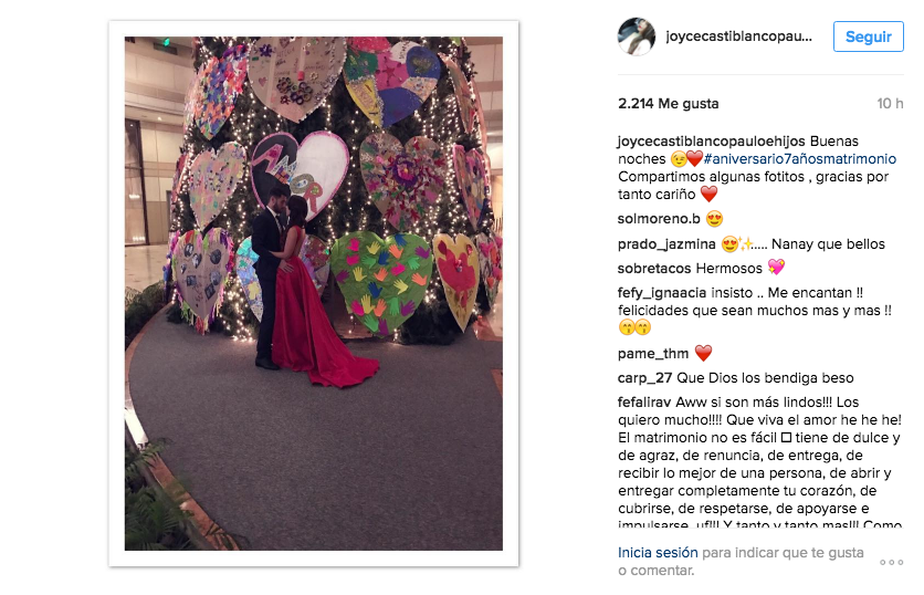 La pareja conformada por Joyce Castiblanco y Paulo Garcés esta acostumbrada a sorprendernos con sus muestras de amor por redes sociales y esta vez  no fue la excepción, pues este sábado celebraron siete años de feliz matrimonio y Joyce no dudó en compartir algunas fotografías con sus seguidores de Instagram.