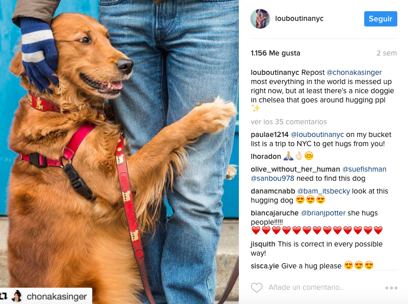 En Nueva York hay un Golden Retriever que está obsesionada con dar abrazos a toda persona que conoce.
