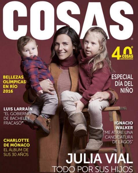Julia Vial y sus hijos de seis años y seis meses, posaron para la portada de este viernes de la revista "Cosas", en donde posaron con mucho estilo y ternura. De esto fueron testigos sus seguidores, quienes vieron las fotos antes de la publicación oficial, luego de que la periodista la compartiera en su cuenta de Instagram.