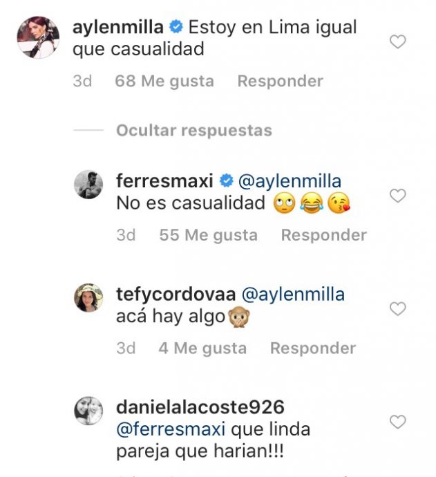 Además, recientemente Aylén y Max compartieron en Instagram Stories la misma imagen de un plato de comida. Y según señala la argentina, ella fue quien cocinó luego de que llegaran visitas a su departamento.