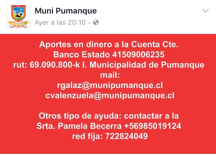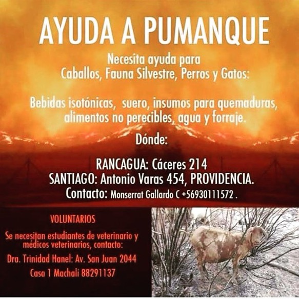 Pero, ¿qué puedes hacer tú? ¿Cómo ayudar a Pumanque, Santa Cruz y otras localidades afectadas? Las formas de ayudar son variadas: con alimentos, agua para los voluntarios, barrigas de cereal, mascarillas, dinero para necesidades de la zona e Incluso veterinarios y médicos para asistir. ¡No hay excusas!