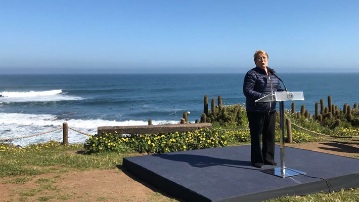 En el mirador de Punta de Lobos, Pichilemu, Michelle Bachelet firmó la iniciativa que anunció en un video a través de su cuenta personal de Twitter.