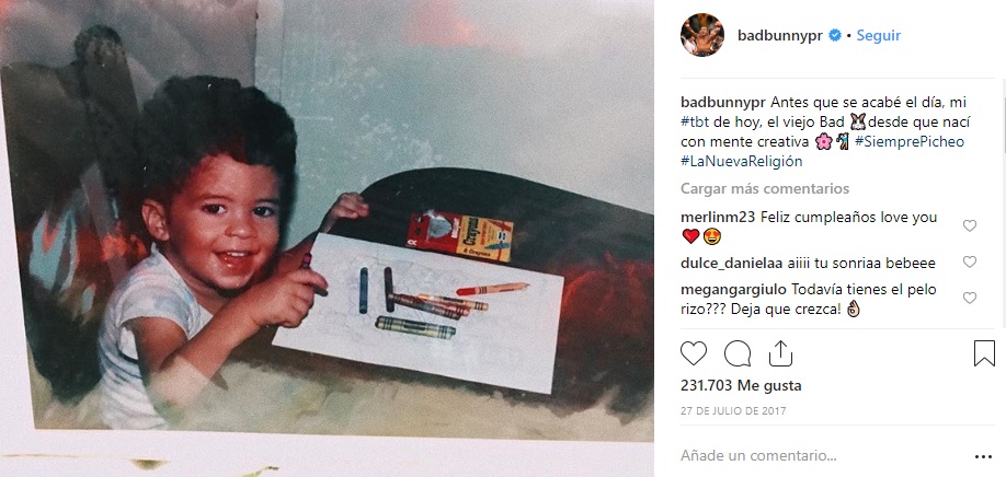 "Siempre tuviste el flow", "ayy muero de amor", "siempre con estilo el conejito malo, me encantan tus canciones", "lo que me gusta de ti es que nunca te has hecho un tatuaje", son algunos de los comentarios que dejan sus fans en las publicaciones.