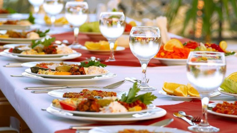 - Banquete tradicional: Es la opción más común, que se acopla tanto a un almuerzo para matrimonios de día, como a una cena para matrimonios de tarde-noche. Suele ofrecerse un aperitivo, antes de que los invitados pasen a sentarse a sus respetivas ubicaciones. Atendidos por camareros, el menú en general está compuesto por uno o varios entrantes, uno o dos platos principales, postre, vinos y bebidas. Y, para cerrar, una barra libre con licores. Los diferentes tiempos del menú dependerán exclusivamente del gusto y presupuesto de los novios.