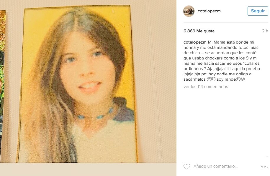 "Mi mamá está donde mi nonna y me está mandando fotos mías de chica. ¿Se acuerdan que les conté que usaba chockers como a los 9 y mi mamá me hacía sacarme esos "collares ordinarios"? Jajajá. Aquí la prueba", escribió la modelo junto a una imagen de aquellos años.