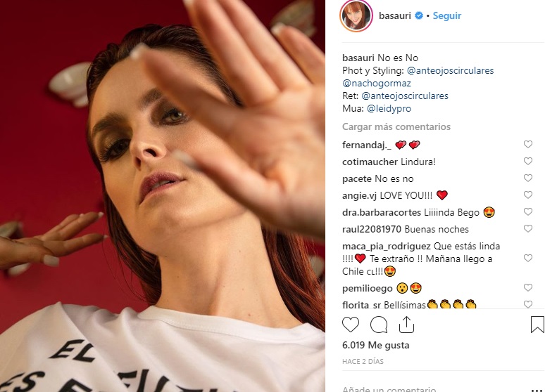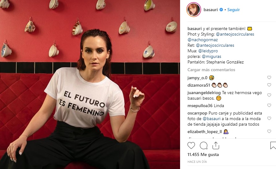 "Prefiero que lo masculino y lo femenino sepan convivir y aprendamos a construir un futuro juntos", "El futuro es para todos de igual manera amiga", "Díselo a la Jani (Dueñas)", "La tela de tu polera es tan falsa como el mensaje de tu polerita" y "Puro canje y publicidad esta foto de @basauri a la moda a la moda de tienda jajajaja igualdad para todos", fueron algunos de los mensajes que recibió.
