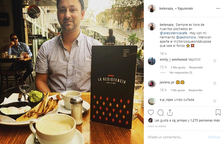 'Siempre es hora de huevitos pochados en @laresistenciacafe. Hoy con mi hermanito @pedromora. Mención aparte al mijito rico 'qué onda tu pose' que sale al fondo', escribió la comediante para acompañar la foto.