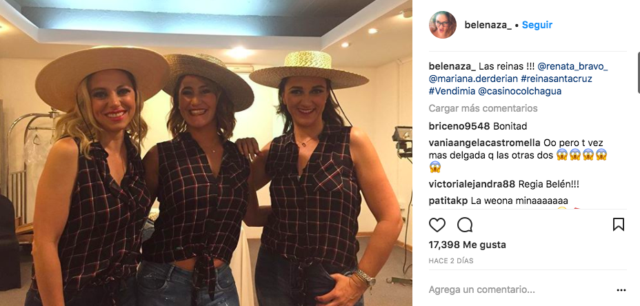 Belén Mora, una popular comediante de nuestro país se convirtió en la nueva reina de la Vendimia en Santa Cruz. En esta competencia, compitió con Mariana Derderian y Renata Bravo.