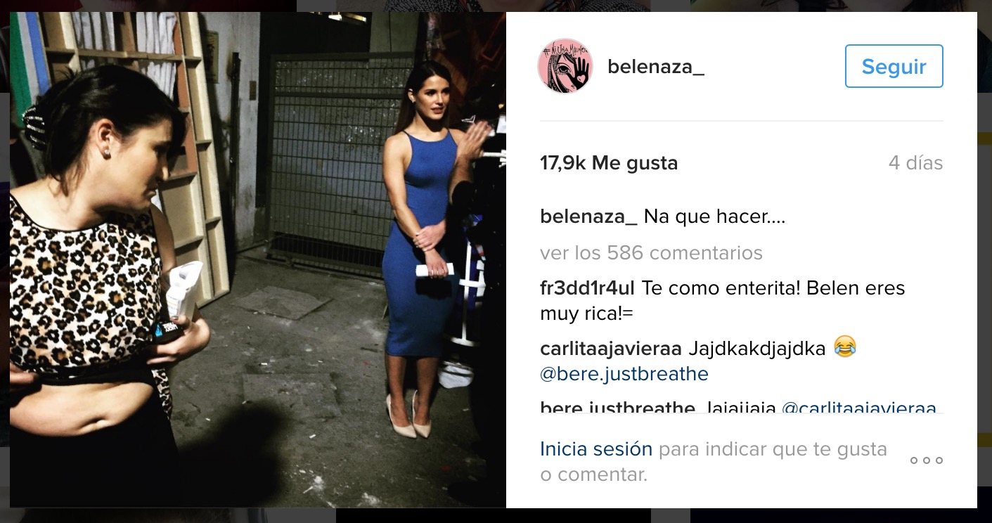 Belén Mora la talentosa comediate de "Morandé con Compañía" publicó una divertida foto en la que se ríe de ella misma, mientras compara su cuerpo con el de la escultural modelo Gala Galdirola, quien fue invitada a "Morandé con Compañía" la semana pasada.